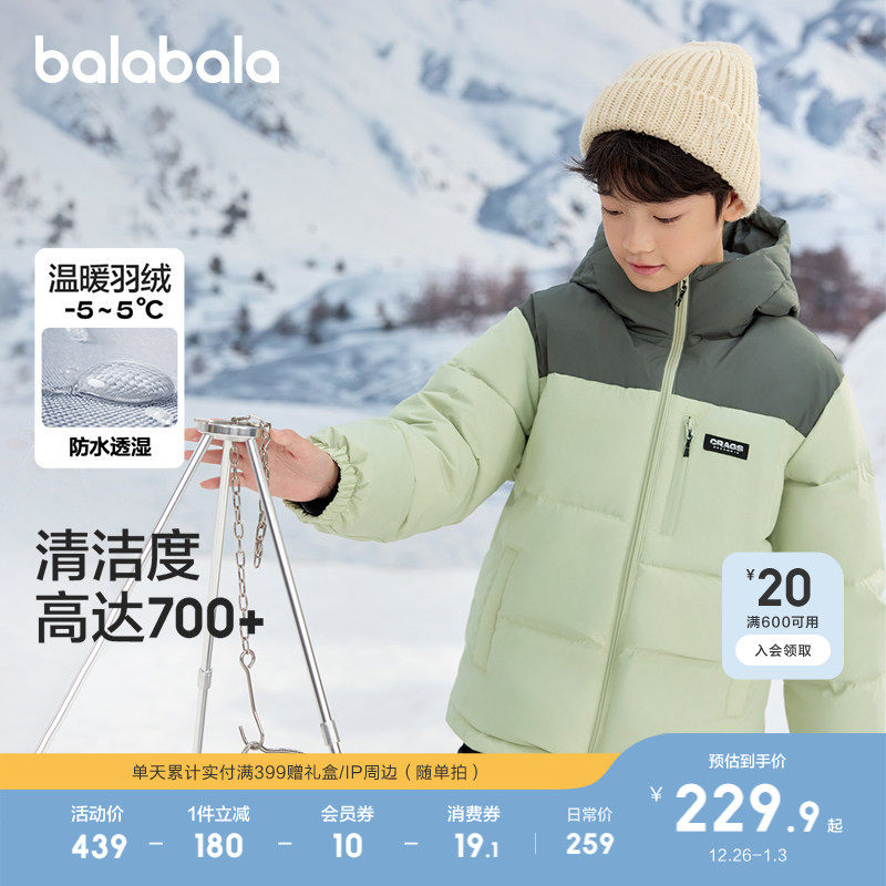 龟背连帽外套 蓝色三防发热紫色2025新款 轻松 森马羽绒服女冬季
