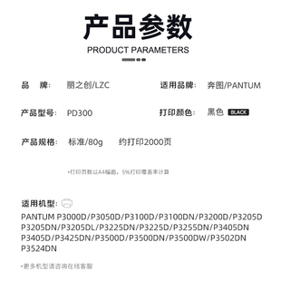 P3425DN加黑型P3500DN 适用奔图P3502DN碳粉PD300墨粉P3100 P3405DN P3205DN激光打印机P3225 P3524DN P3200D