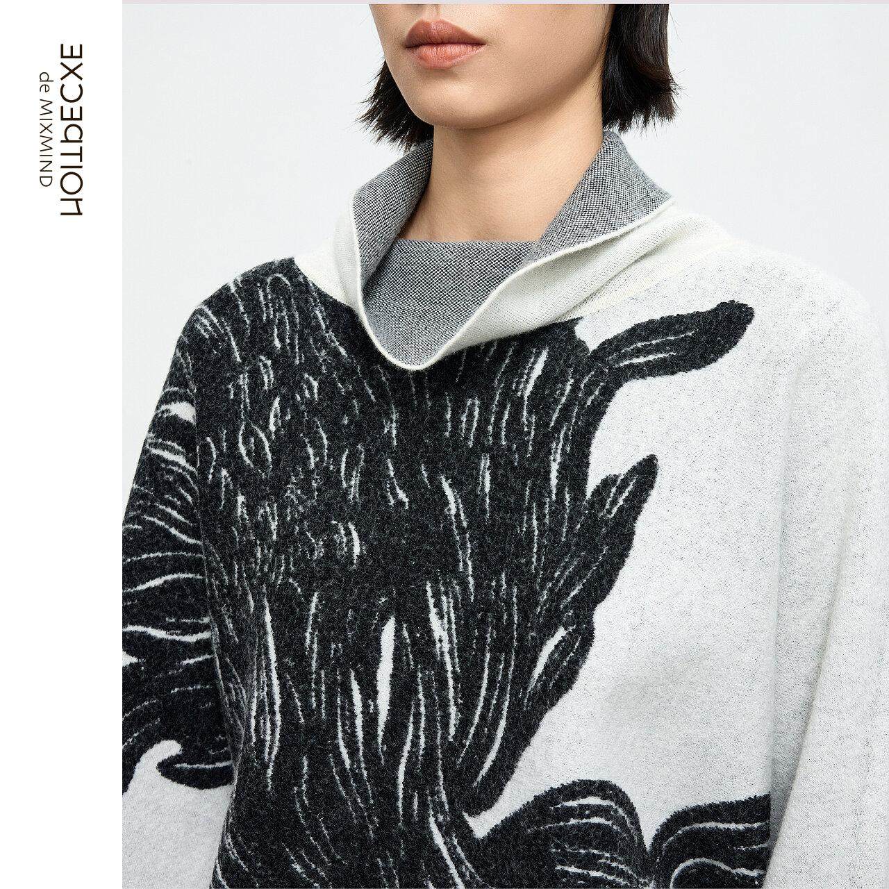 女高领打底衫 EXCEPTION例外女装 毛针织衫 蝙蝠袖 内搭上衣 中式