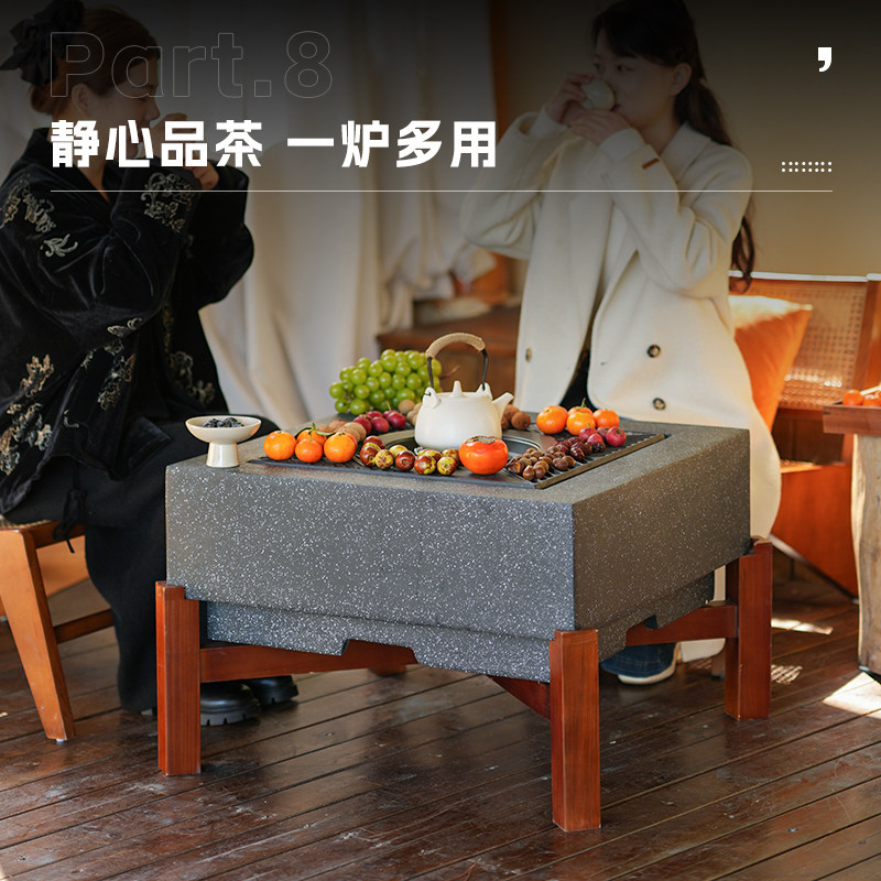 庭院围炉煮茶烤火炉户外烧烤炉电碳两用围炉茶桌子器具全套家用