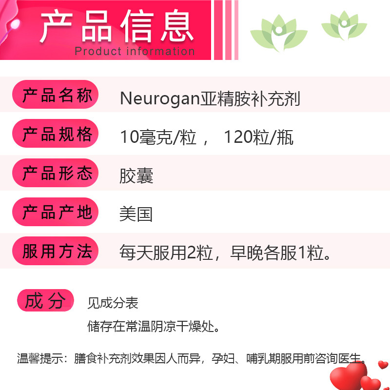 美国原装 Neurogan亚精胺补充剂10毫克小麦胚芽提取Spermidine