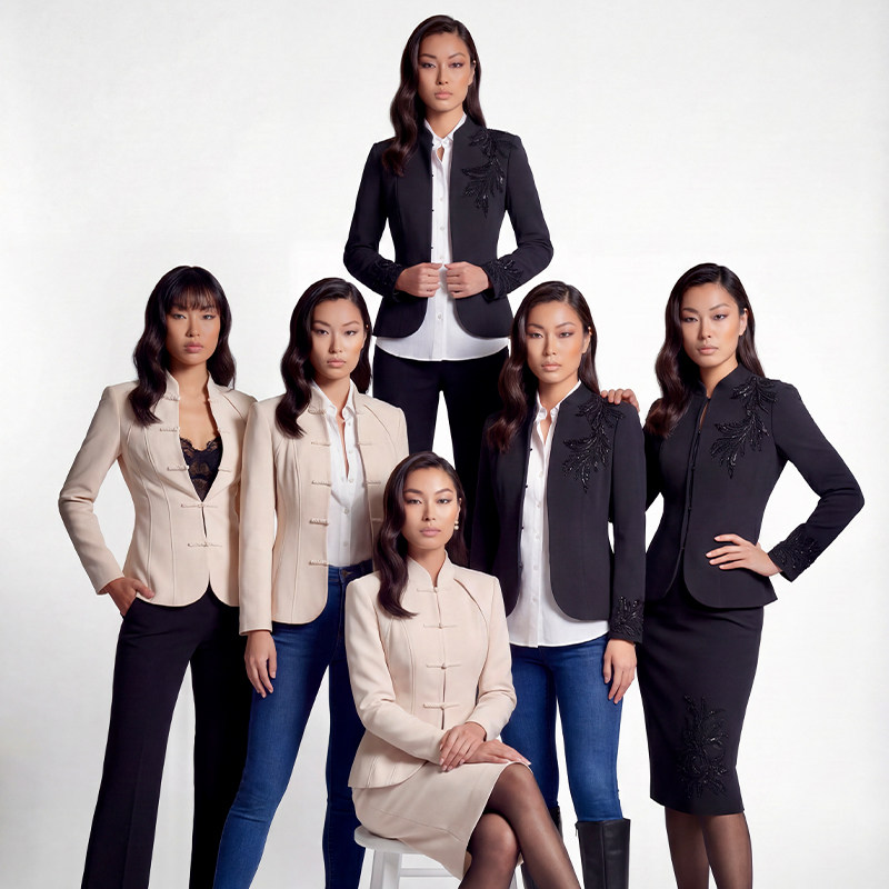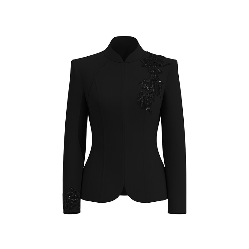 女士外套 唐装 醋酸混纺重工钉珠花朵修身 新中式