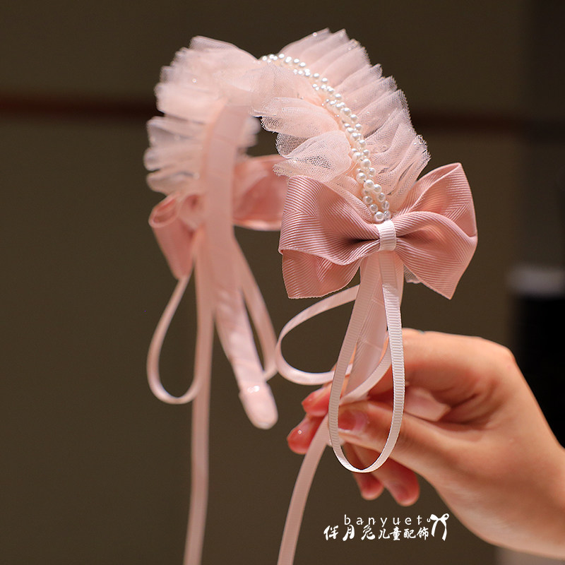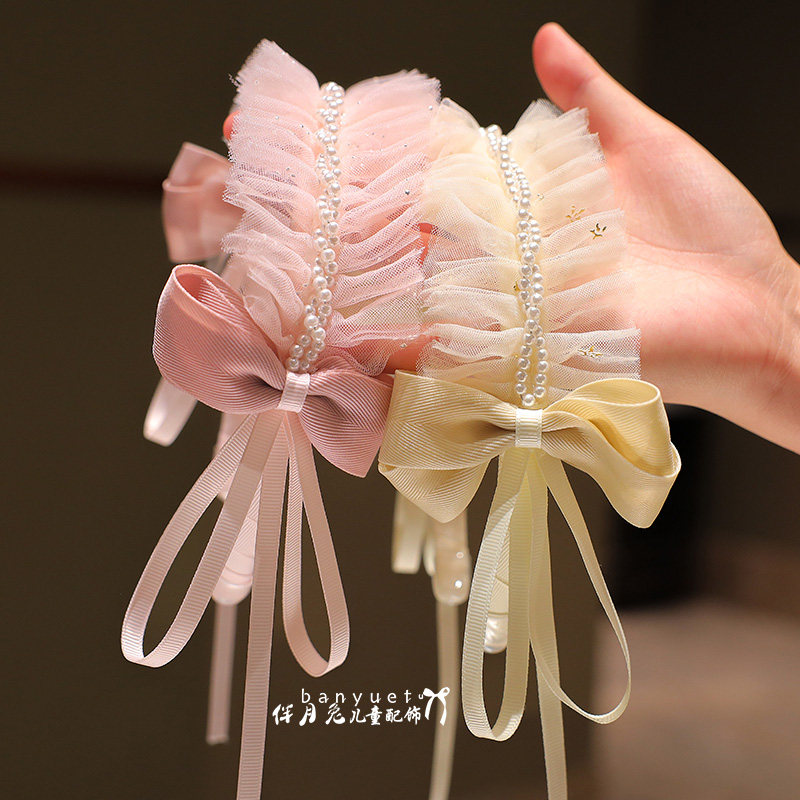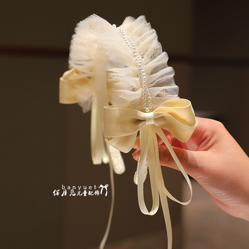 儿童发箍韩版 公主洛丽塔风珍珠网纱蝴蝶结头箍女童甜美可爱发卡