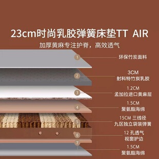8H小金泰国进口天然乳胶床垫1.8m黄麻偏硬弹簧