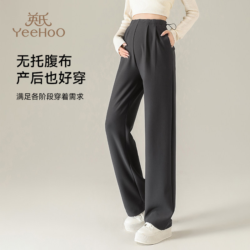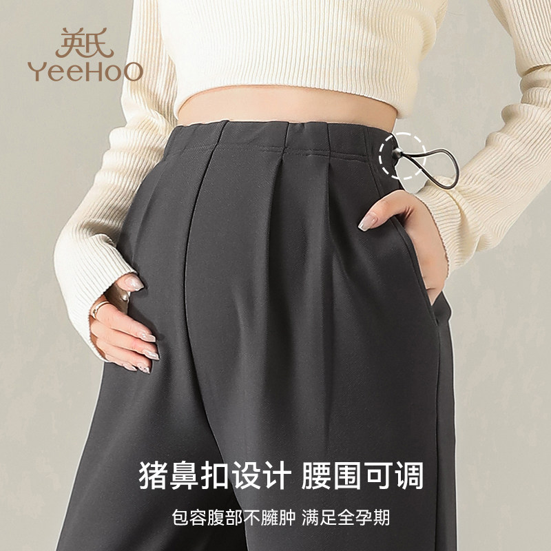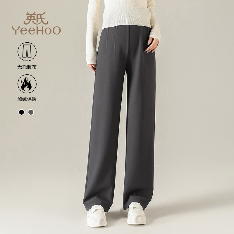 加绒保暖休闲阔腿长裤 英氏秋冬季 子孕妈冬款 无托腹孕妇直筒裤 新款