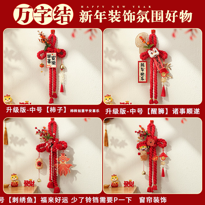 万字结入户门口挂件过年装 福字中国结红色门挂 饰新年2026马年新款
