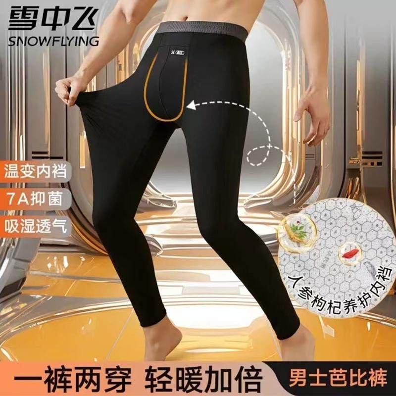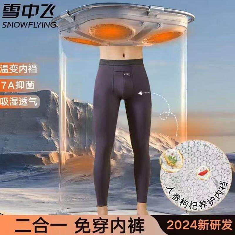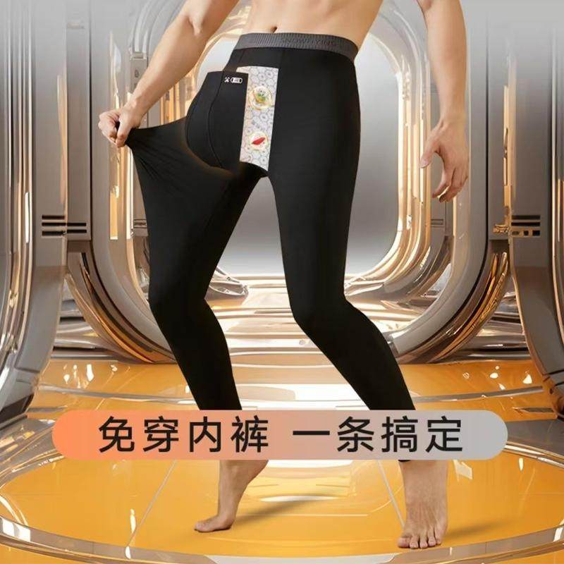 无痕裤 秋冬款 修身 男士 加绒加厚款 滑面太空舱免穿内裤 打底裤 保暖裤