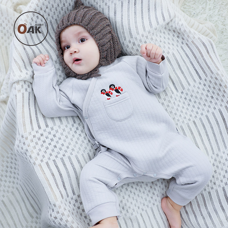 Oak 宝宝满月爬服 mont口袋刺绣新生儿宝宝衣服秋冬小月龄薄棉秋季