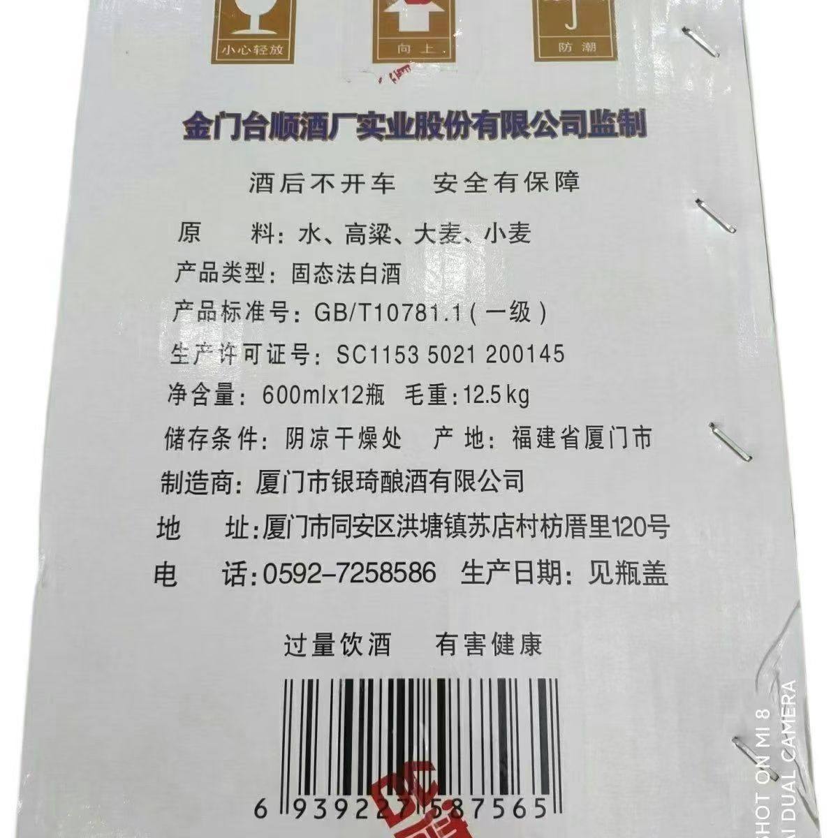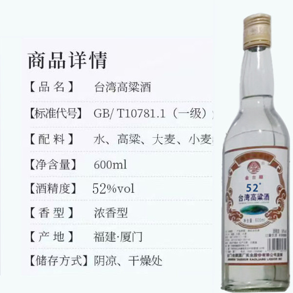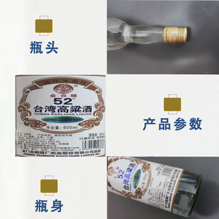 台湾高粱酒52度600ml浓香型固态法粮食白酒高度口粮整箱12瓶酒水