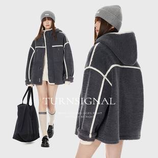 TurnSignal潮牌颗粒绒外套女冬季 休闲宽松加厚保暖绒外套 2025新款