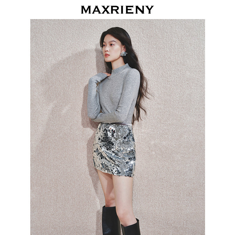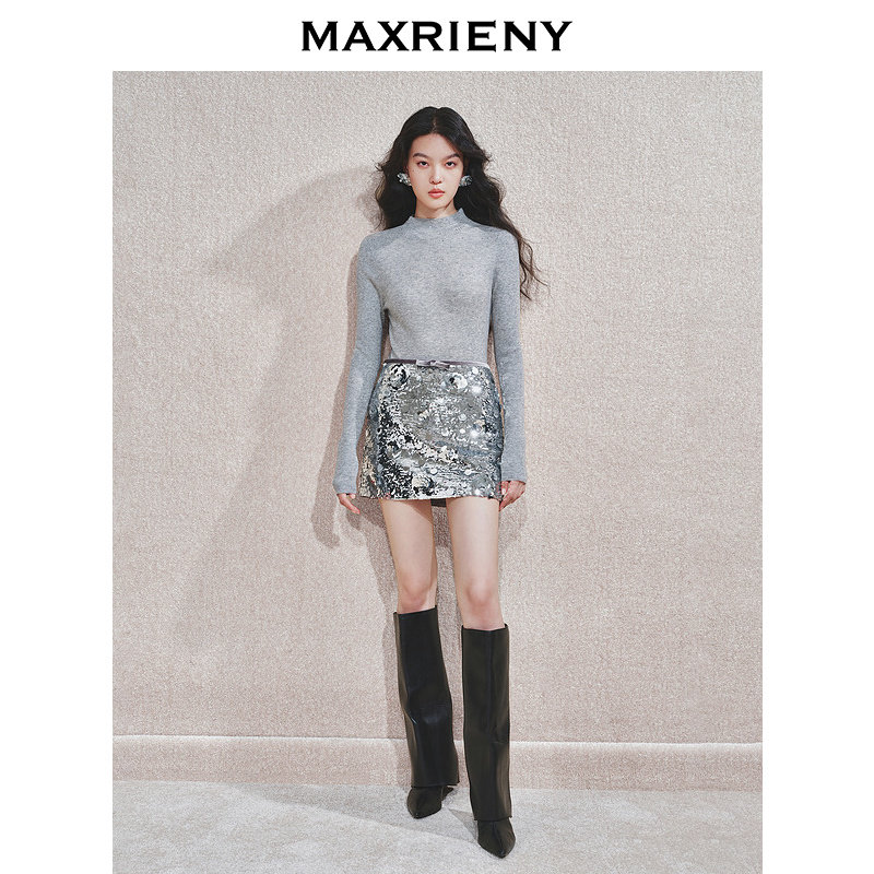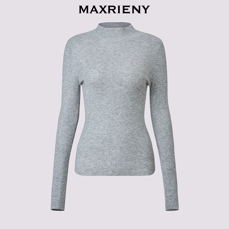 MAXRIENY精致日常烫钻小高领套头毛衫 商场同款