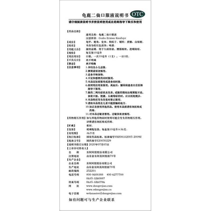 东阿阿胶龟鹿二仙口服液补肾官方正品 中药合剂补气补品男人补血