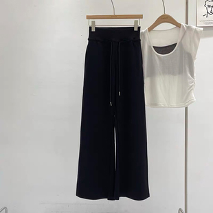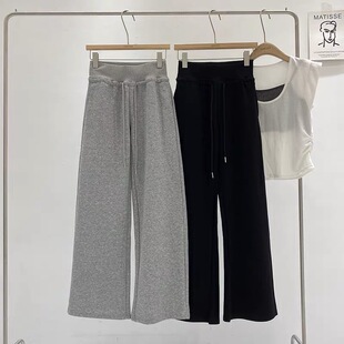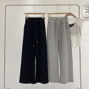 女秋冬加厚抽绳显高145休闲直筒裤 小个子150cm窄版 辣妹运动阔腿裤