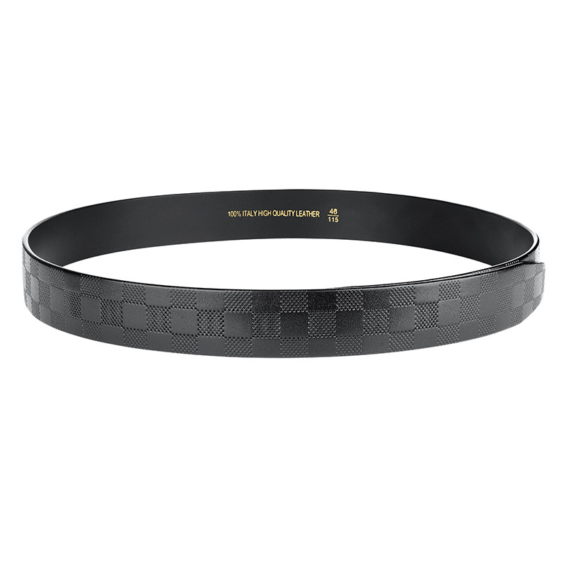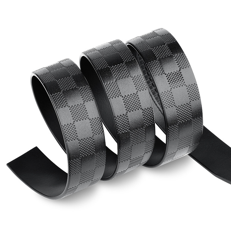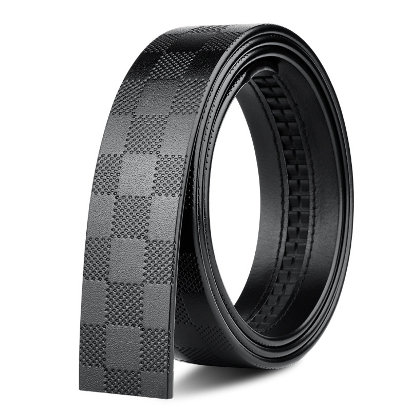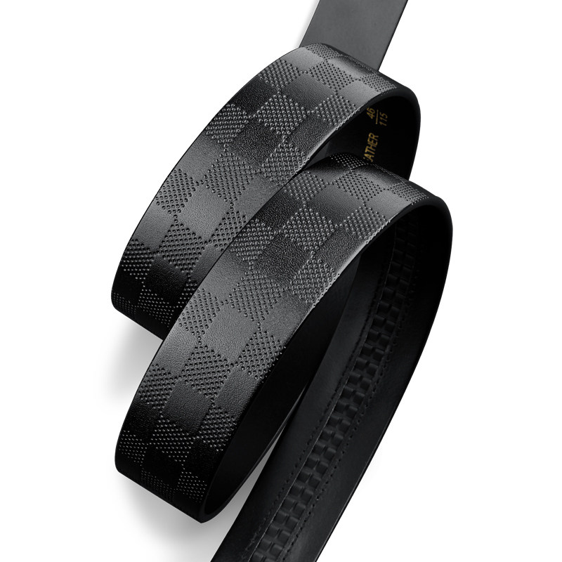 卡帝乐鳄鱼皮带男不带头头层大格纹牛皮无扣腰带3.5cm真皮单带条