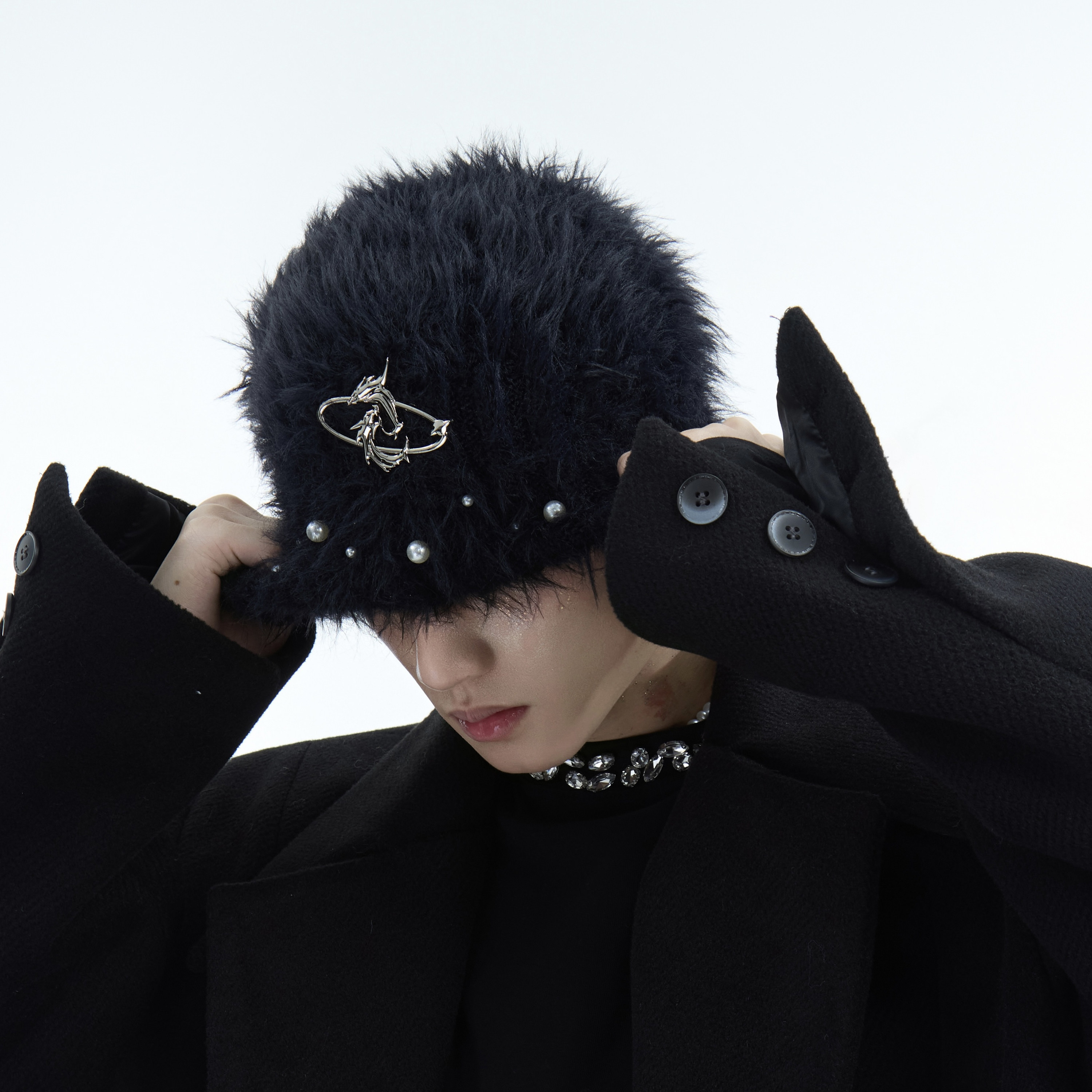 ArguE CulturE秋冬小众针织长毛帽重工珍珠设计毛绒绒加厚冷帽男