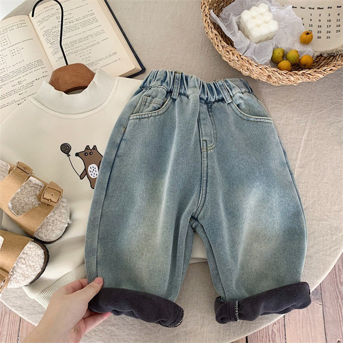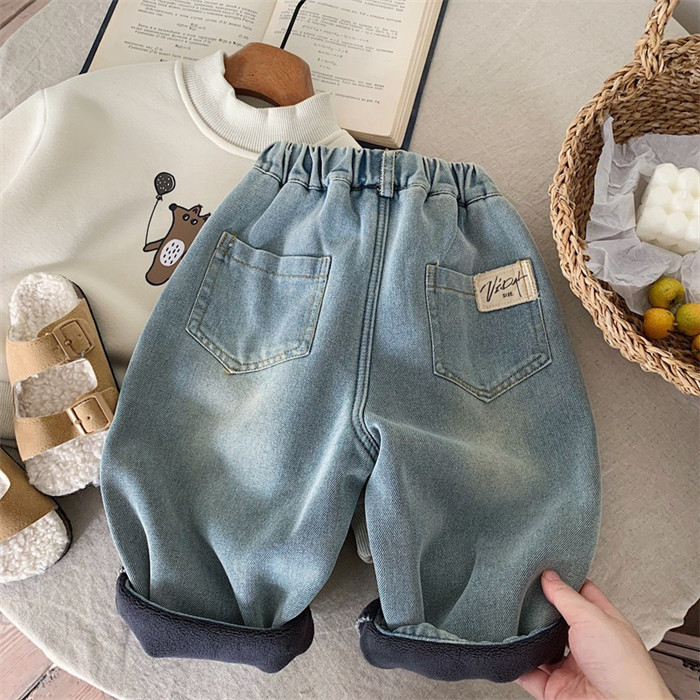 子2025冬季 秋冬好看童装 新款 男宝宝加厚冬装 儿童加绒牛仔裤 男童裤