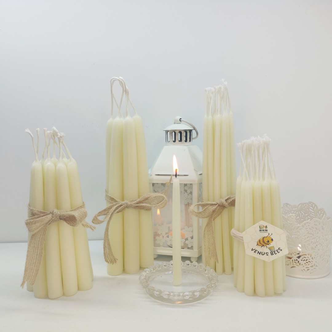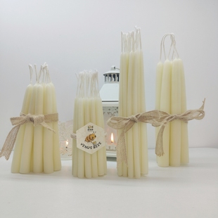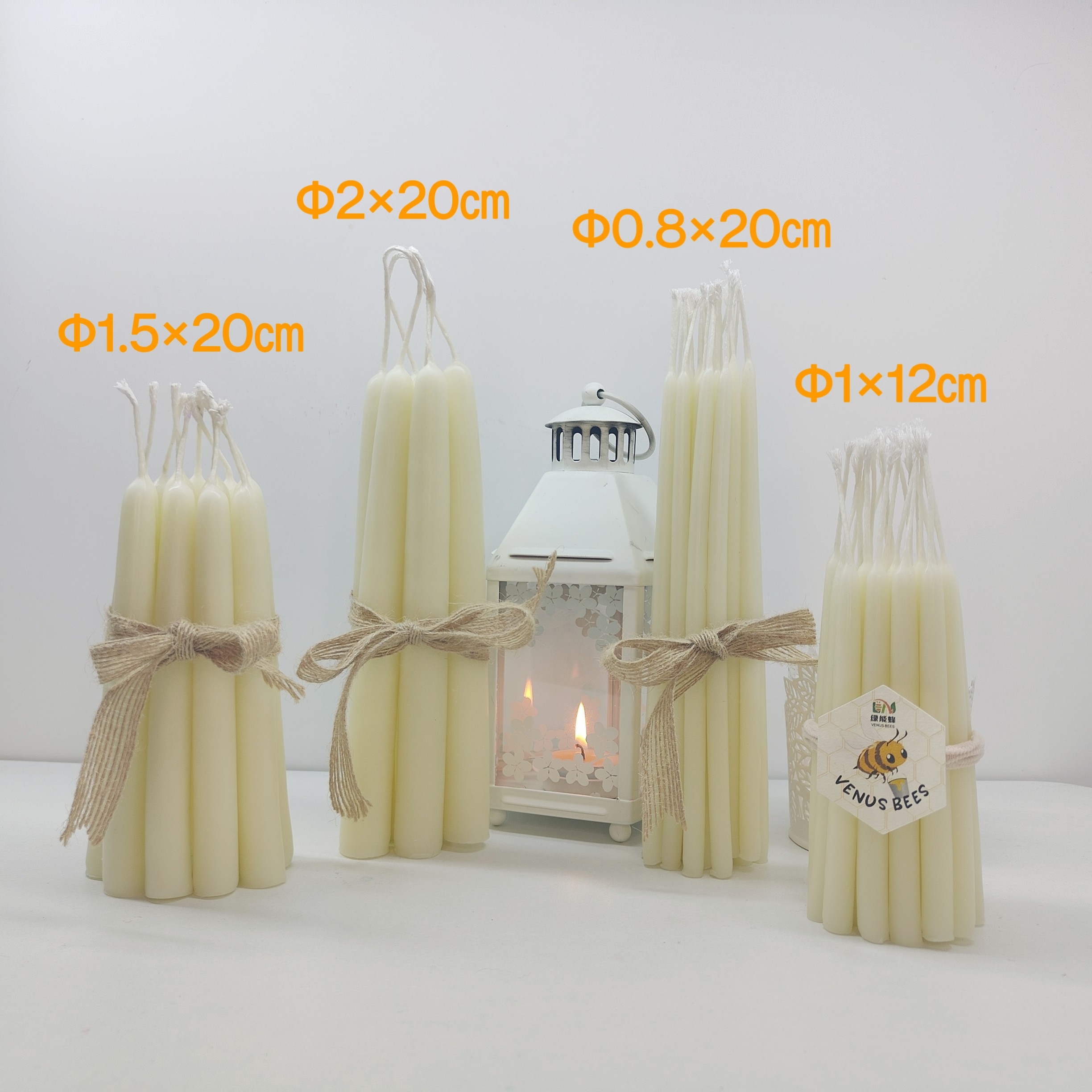 Φ2×20㎝白色天然蜂蜡烛纯手工餐桌美学创意华德福香薰仪式 祈祷