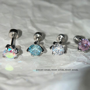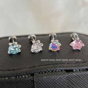 闪闪龙爪耳钉锆石耳骨钉粉蓝独特五爪龙鳞钛钢平底耳蜗钉耳环耳饰