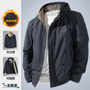 冲锋衣夹棉夹克棉服2025加厚防风工装 男士 连帽二棉外套 新款 春秋季