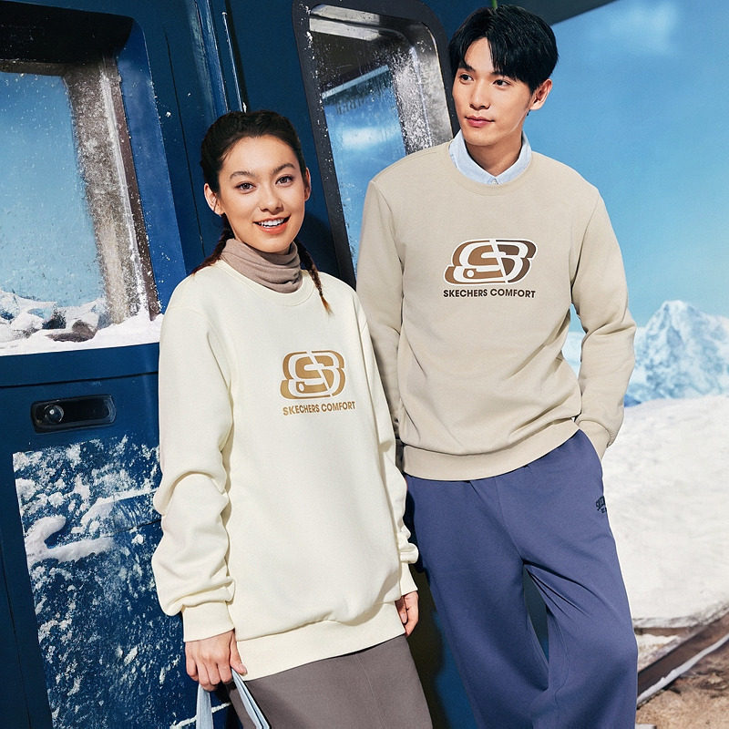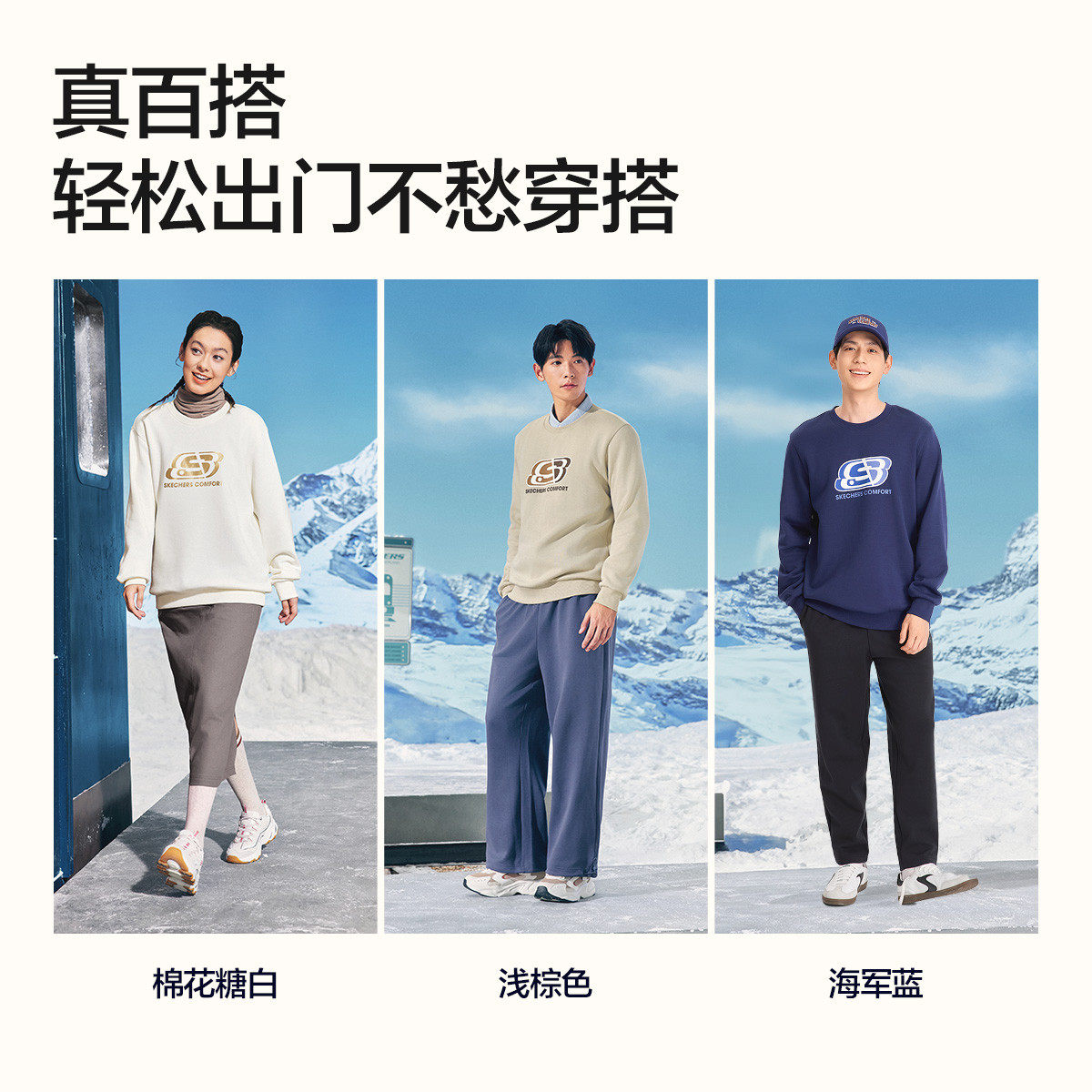 打底衫 情侣款 简约蓄热保暖加厚宽松加绒卫衣 男女款 斯凯奇运动长袖
