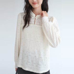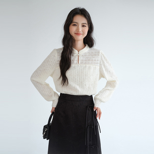 女装 蓝若水大码 2026春季 新款 立领上衣 新中式 珍珠盘扣蕾丝衬衫