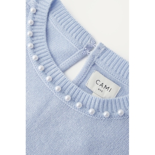 NYC女士秋冬带缀饰蓝色直筒型长袖 Cami 末折扣 羊毛毛衣 季