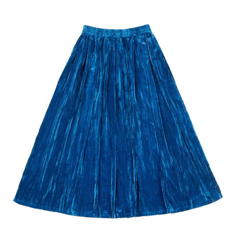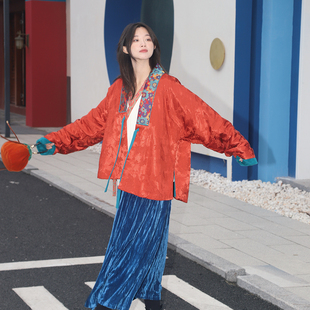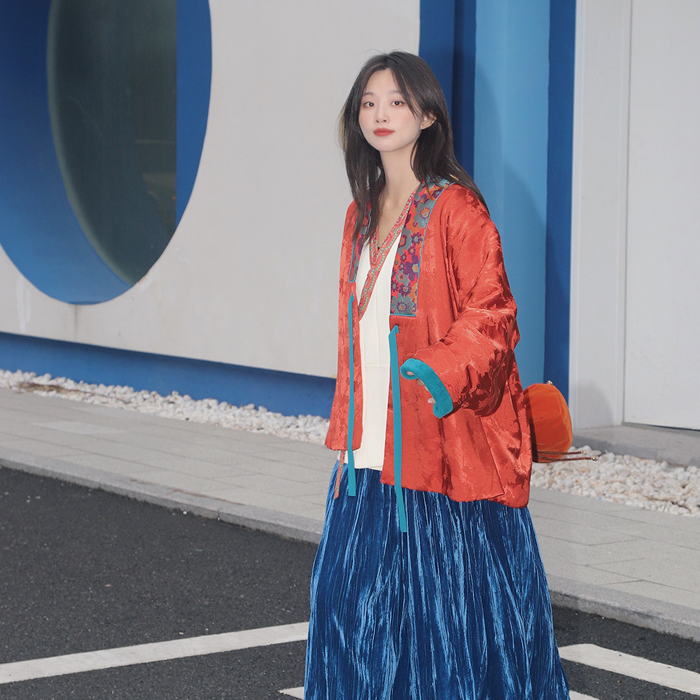 谜阿凰元 夕宝蓝丝绒半身裙明制对襟袄破裙原创改良汉服女秋冬套装