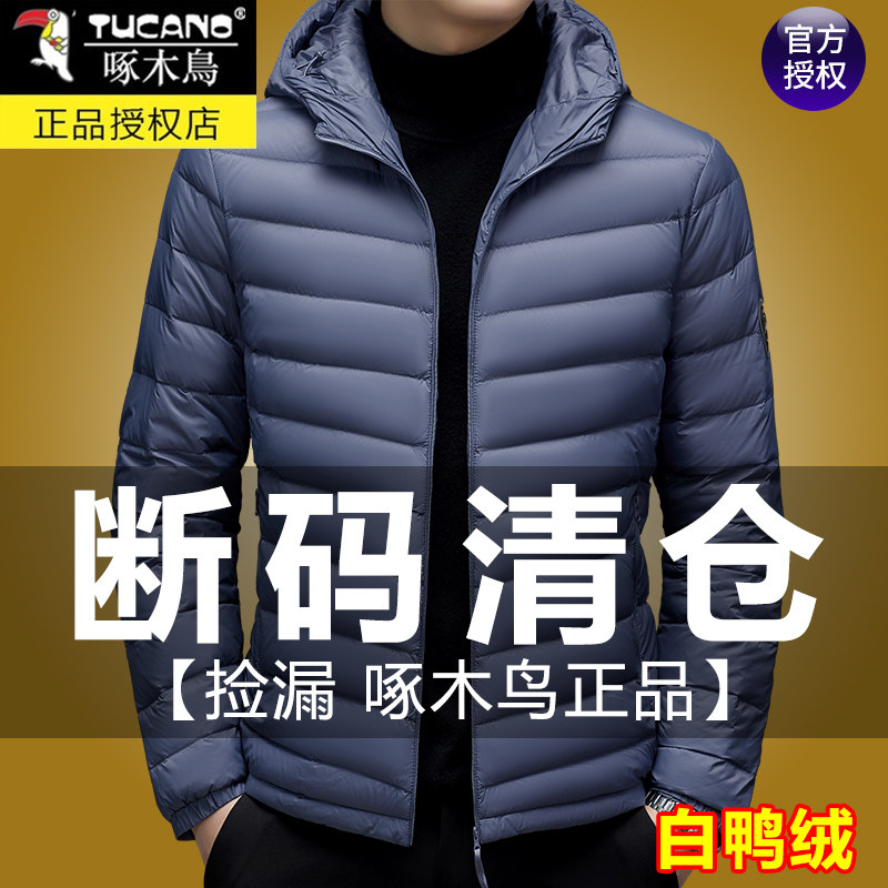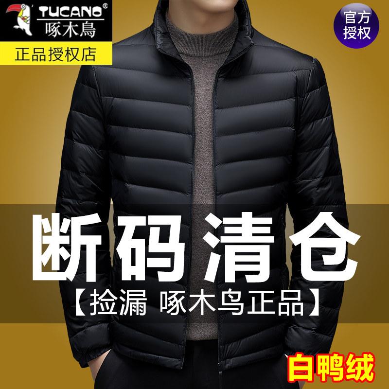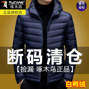 保暖棉袄连帽短款 新款 爸爸白鸭绒外套 羽绒服男秋冬季 啄木鸟轻薄款