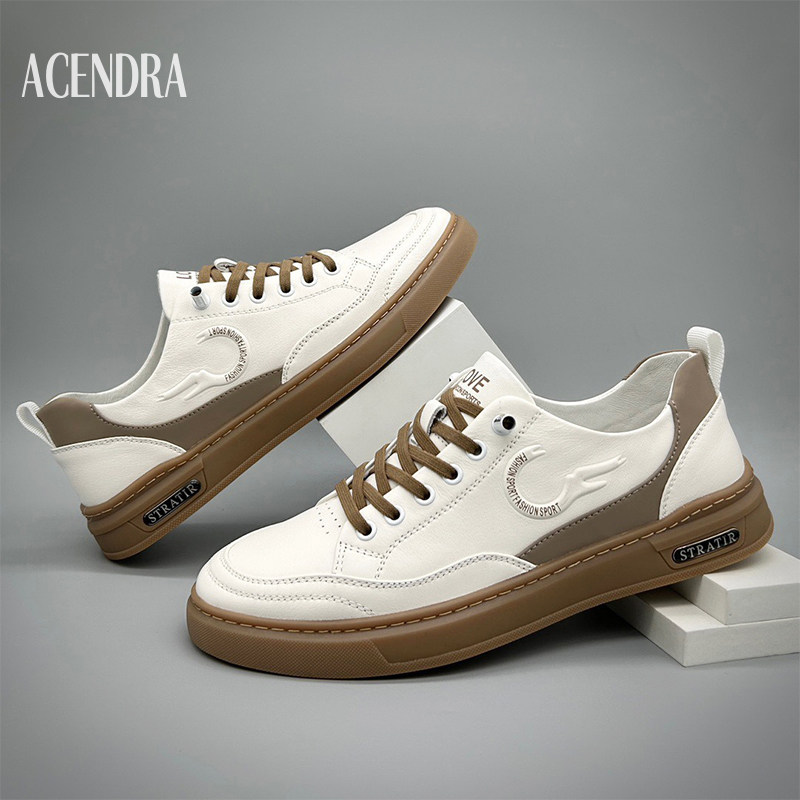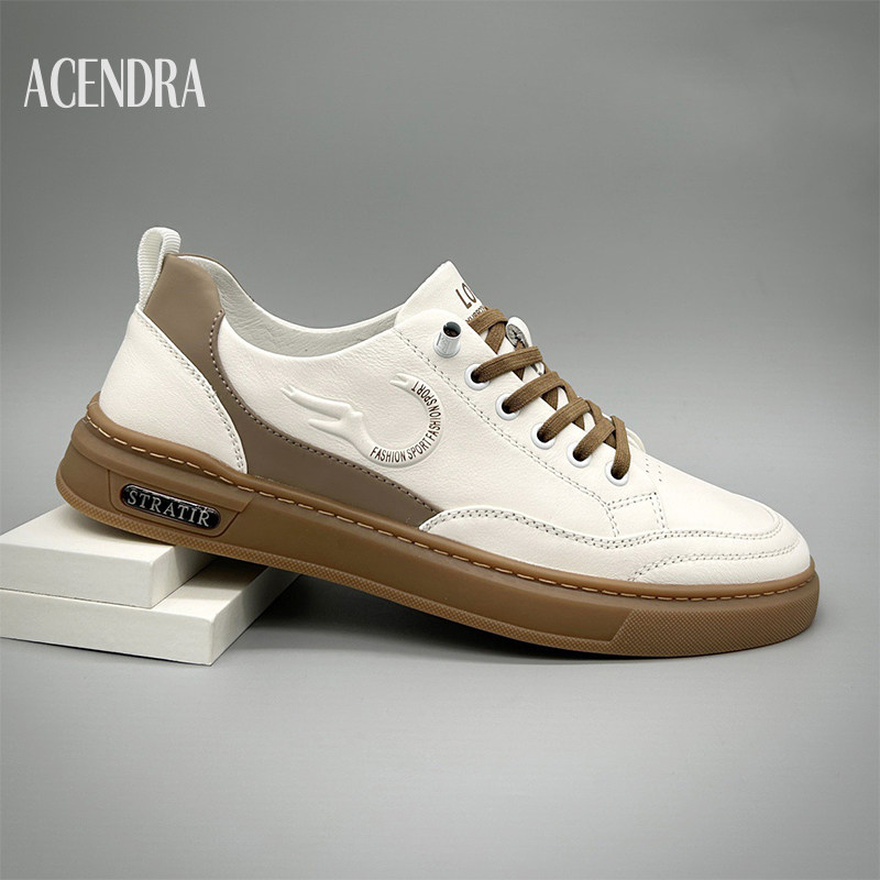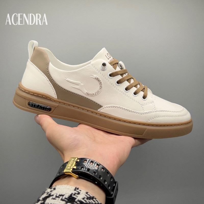 潮流软底休闲黑色板鞋 奢品头层牛皮百搭真皮小白鞋 男士 ACENDRA