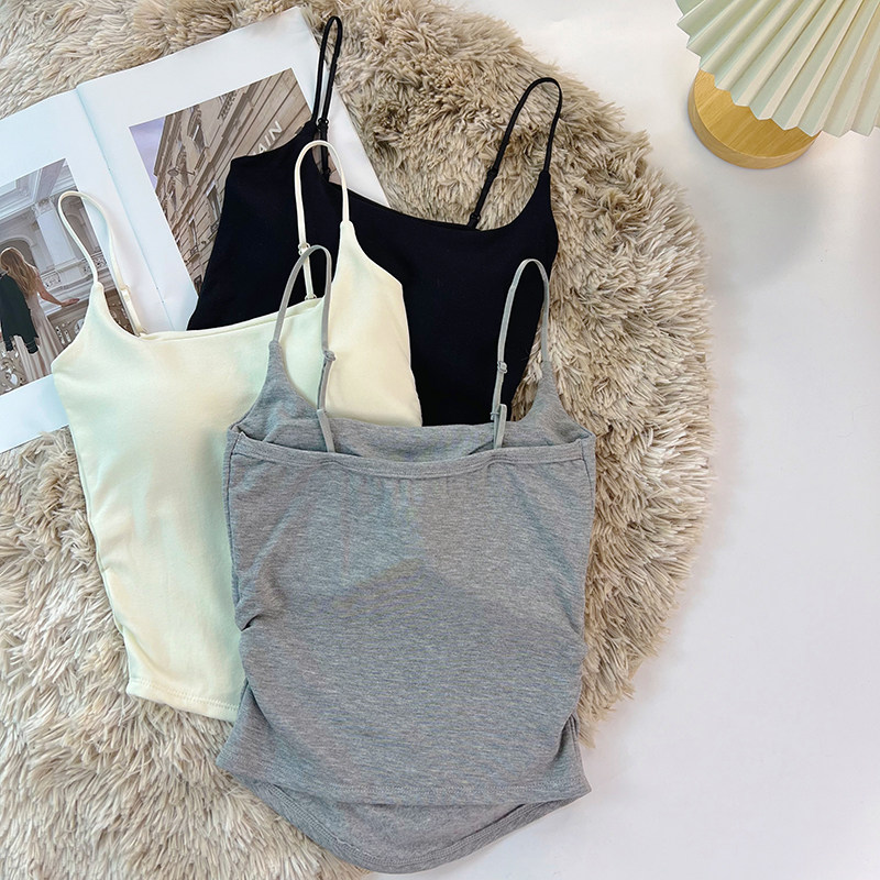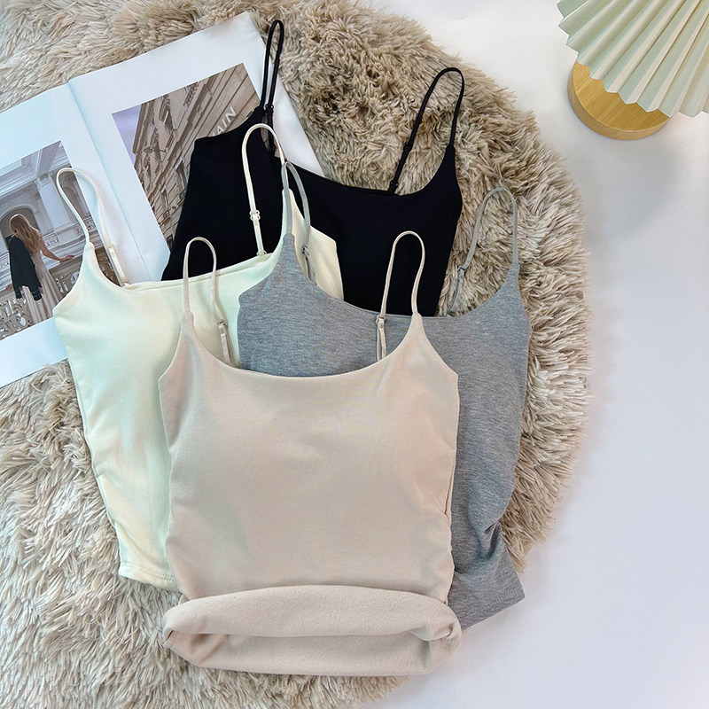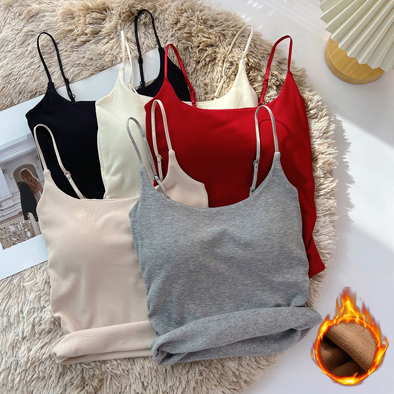 纯欲辣妹带胸垫吊带背心女冬季 加厚磨毛内搭美背抹胸百搭白色上衣