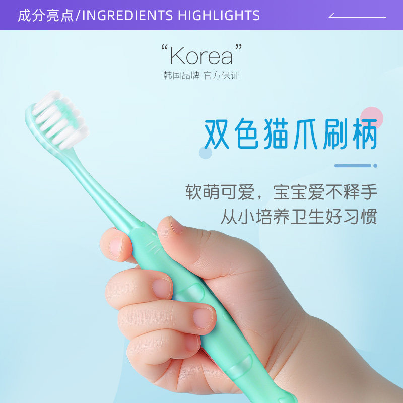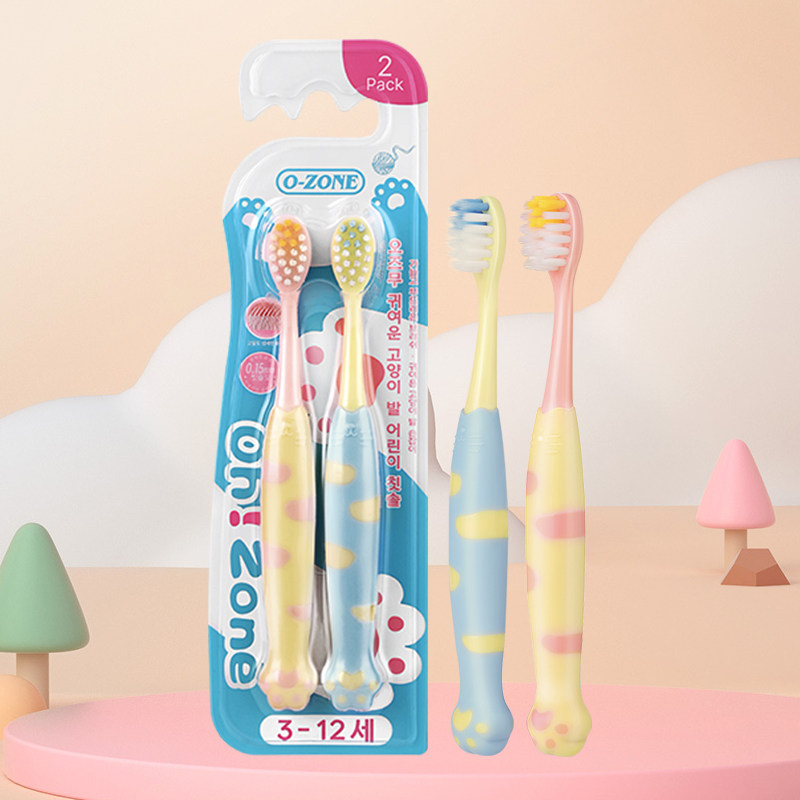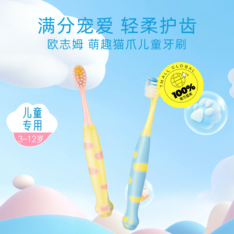 12岁2支装 zone欧志姆韩国萌趣猫爪儿童清洁适用3 牙刷 自营