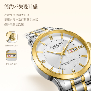罗西尼手表机械表轻奢日历情侣对表男表女表60019 专柜同款