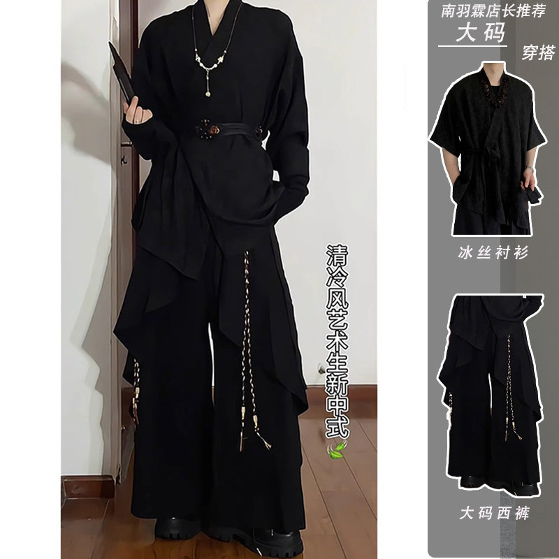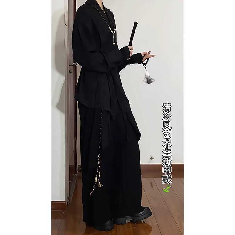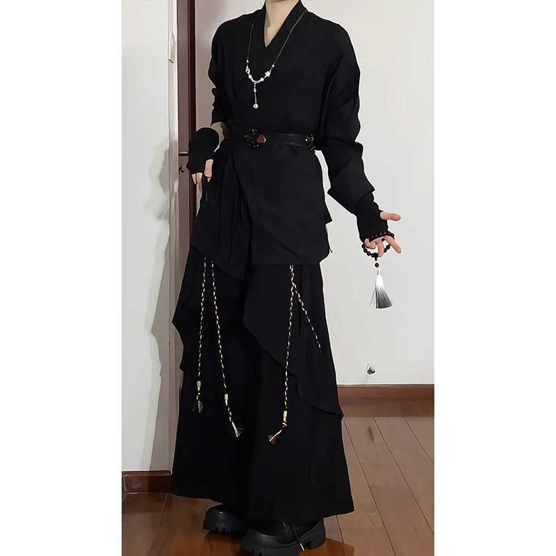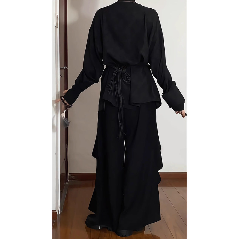 小众裁片拼接山本风复古流苏阔腿西裤 套装 中国风不规则裙裤 新中式