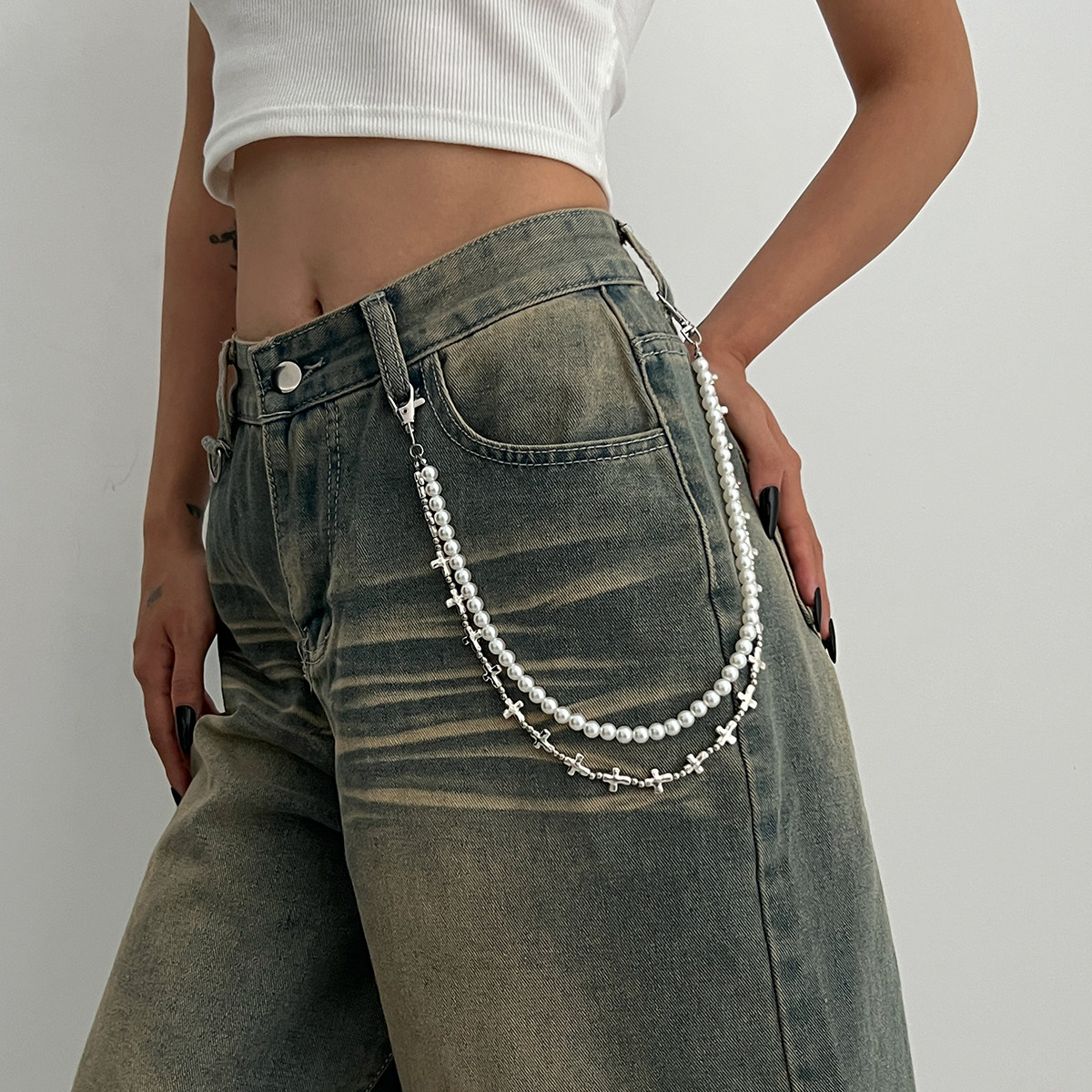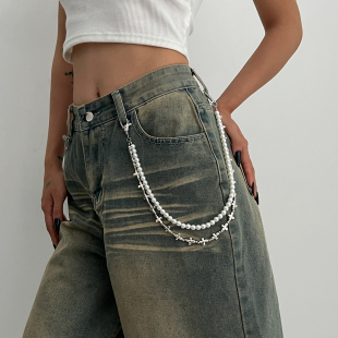 2026春夏新潮个性 链女 外出拍照搭配饰品酷 仿珍珠双层裤 嘻哈时尚