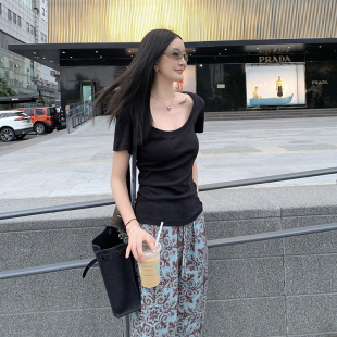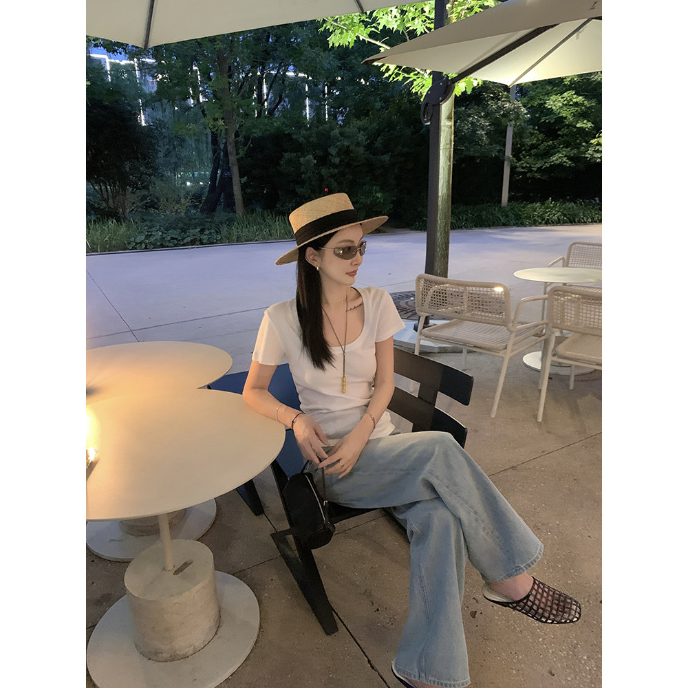 大小姐77 显瘦纯色T恤 夏日高支100强捻棉干爽透气极简大领口修身