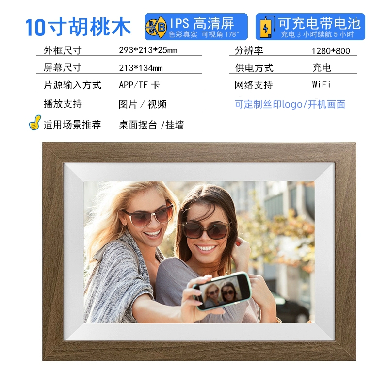 充电款 相框IPS触屏高清电子相册wifi手机远程传图片 家用10寸数码