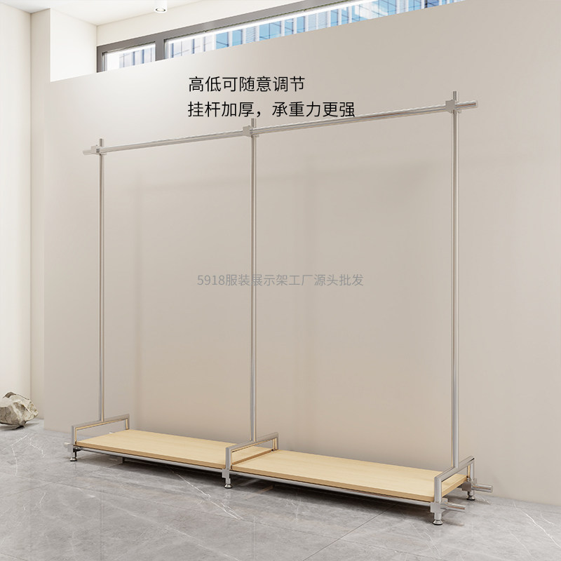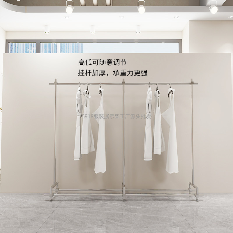 双层架子 双杆可移动升降挂衣展示商用衣帽间服装 服装 衣帽架落地式