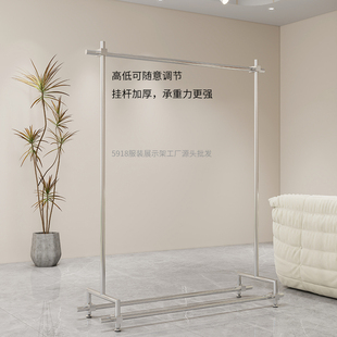 可调节带轮子可移动服装 店展示架拉丝不锈钢衣架落地挂衣架家用