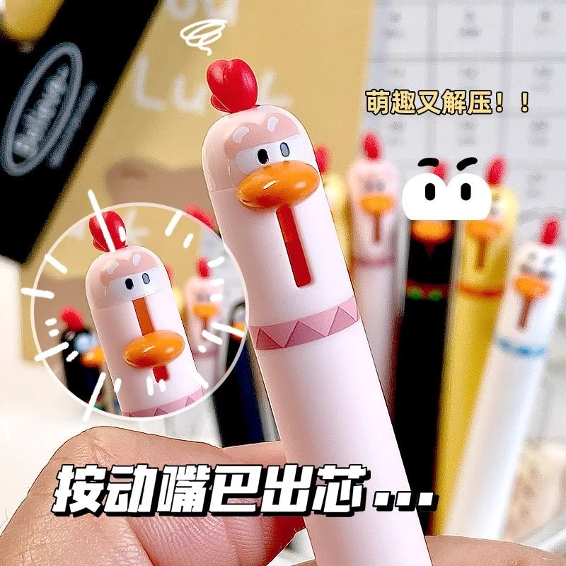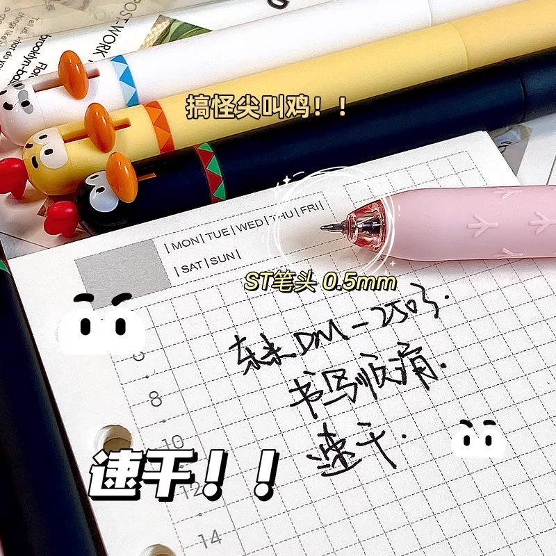 东米按动中性笔萌宠小鸡DM 2503搞怪趣味解压高颜值可爱0.5速干顺滑刷题笔ST头学生考试黑色水笔圆珠笔签字笔