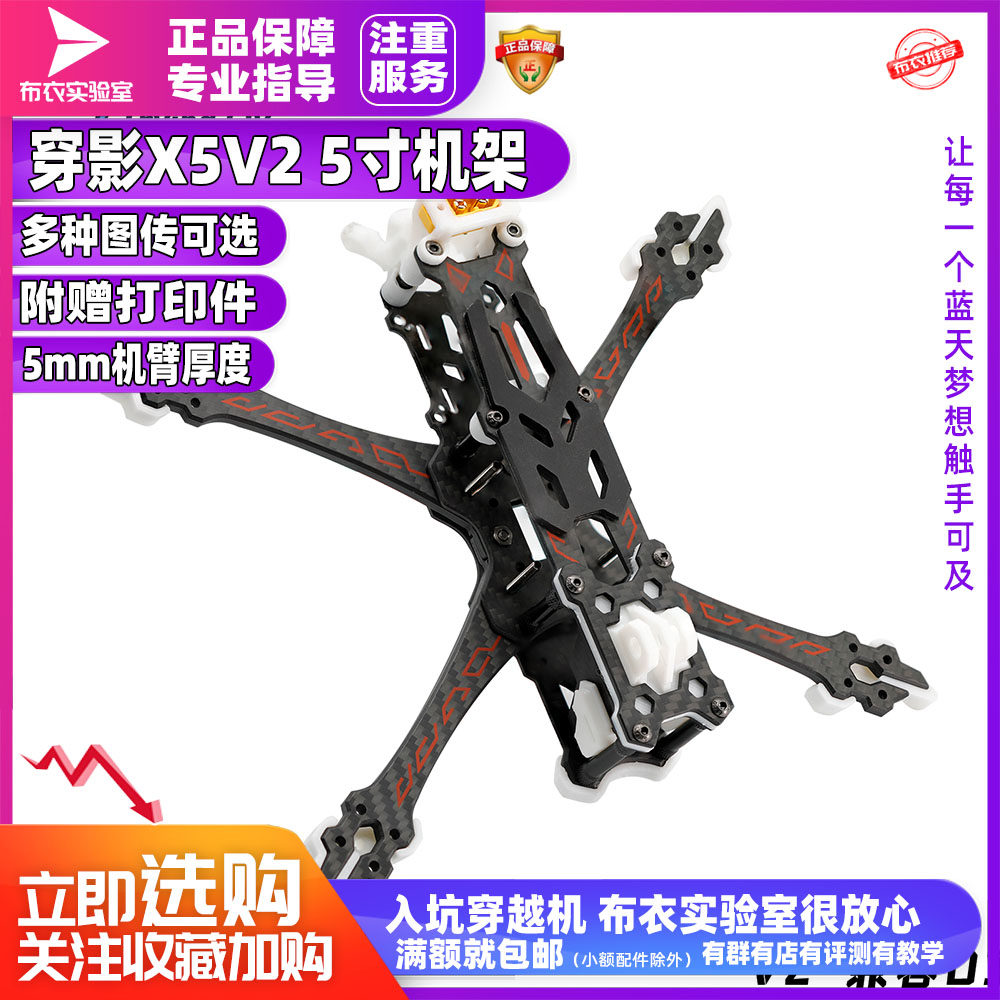 新品 包邮 fly花飞耐炸航拍机架丝滑 穿影X5V2穿越机5寸机架Trying
