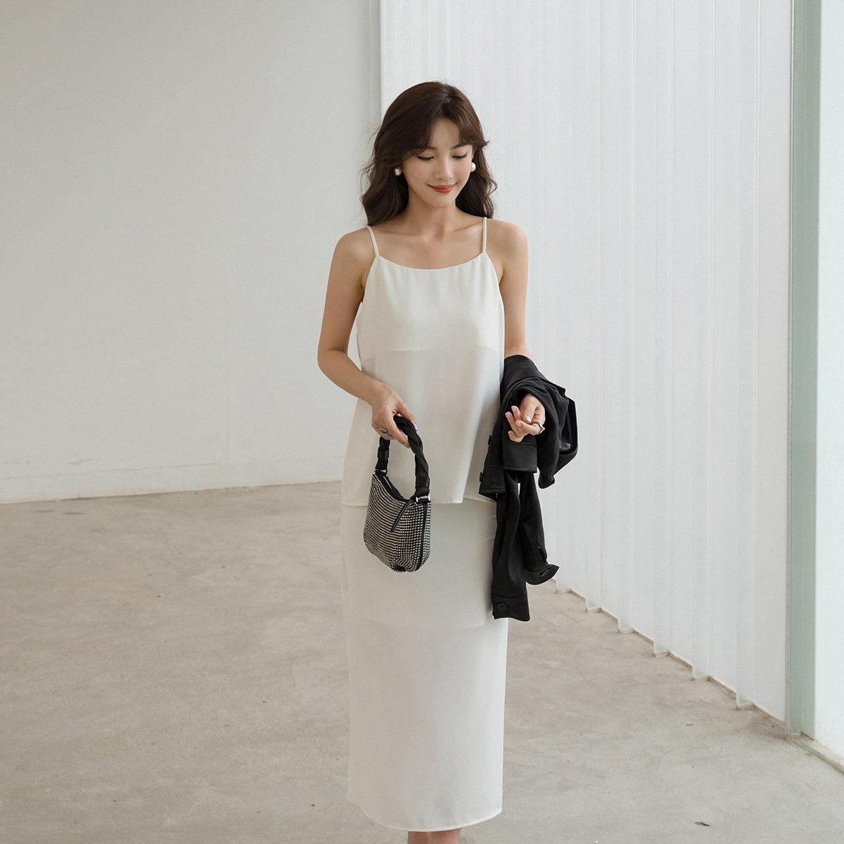 气质吊带背心西装 内搭夏外穿雪纺打底上衣开衩性感半身裙套裙2063