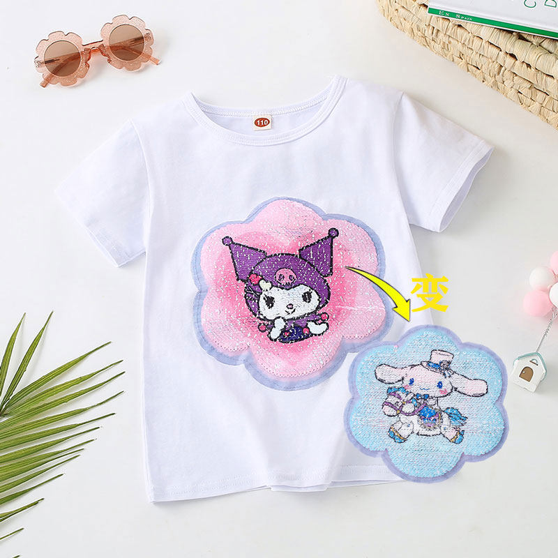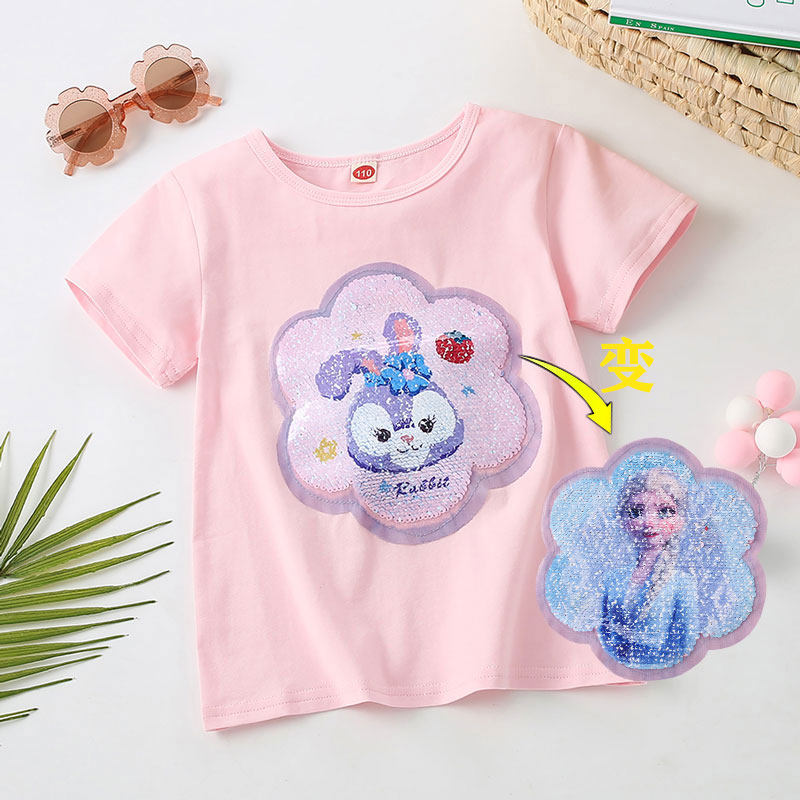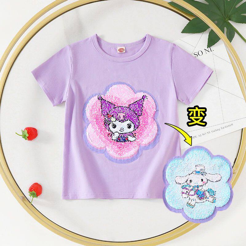 儿童卡通洋气上衣t衫 t恤纯棉亮片变色半袖 短袖 库洛米衣服女童夏装