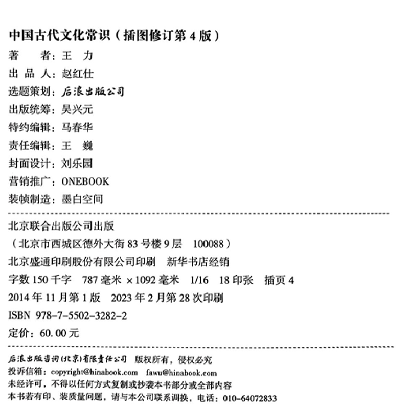 简明读本历史大众认识面貌重要全简明读本国学历史文化读物大学通识教材书籍正版 中国古代文化常识 王力著 彩页 插图修订版