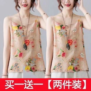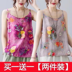薄款 圆领背心吊带女夏季 宽松大码 百搭打底衫 印花上衣 单 无袖 两件