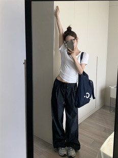 显瘦垂感拖地卫裤 修身 女春季 橘子树在哪儿腰头撞色休闲弹力喇叭裤