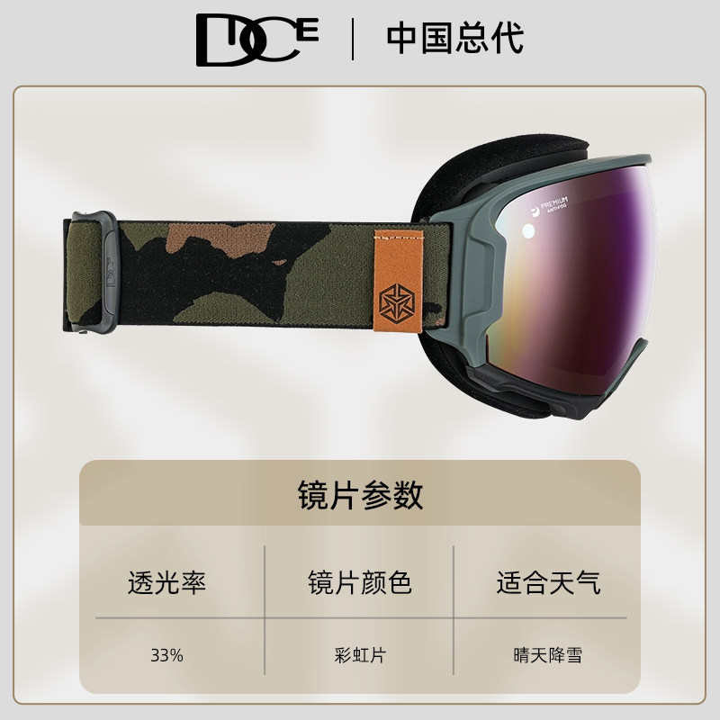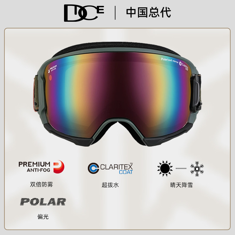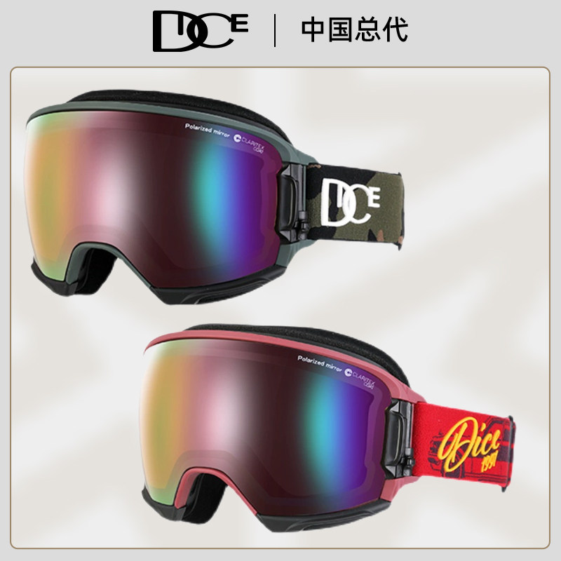 日本DICE高端彩虹滑雪镜超高清偏光视野球面镜2倍防雾雪镜HR1957