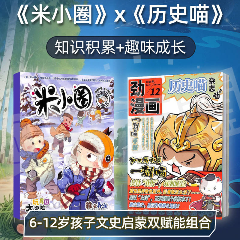 杂志铺儿童6 2026年1月起订1年共24期全年订阅 12岁畅销文学故事书漫画成语日记一二三四五年级小学生 历史喵杂志组合 米小圈