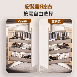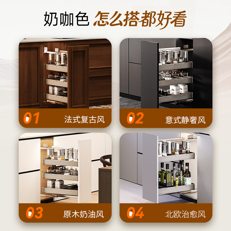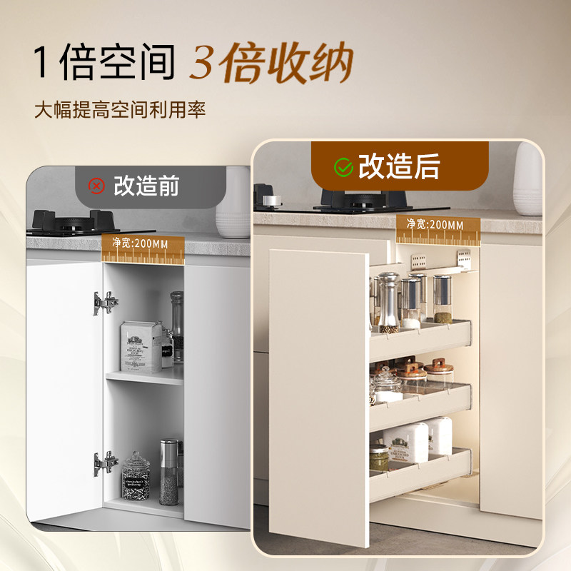 酷太窄柜拉篮三层中枢阁厨房抽屉式 调料置物架 柜内铝合金收纳小款