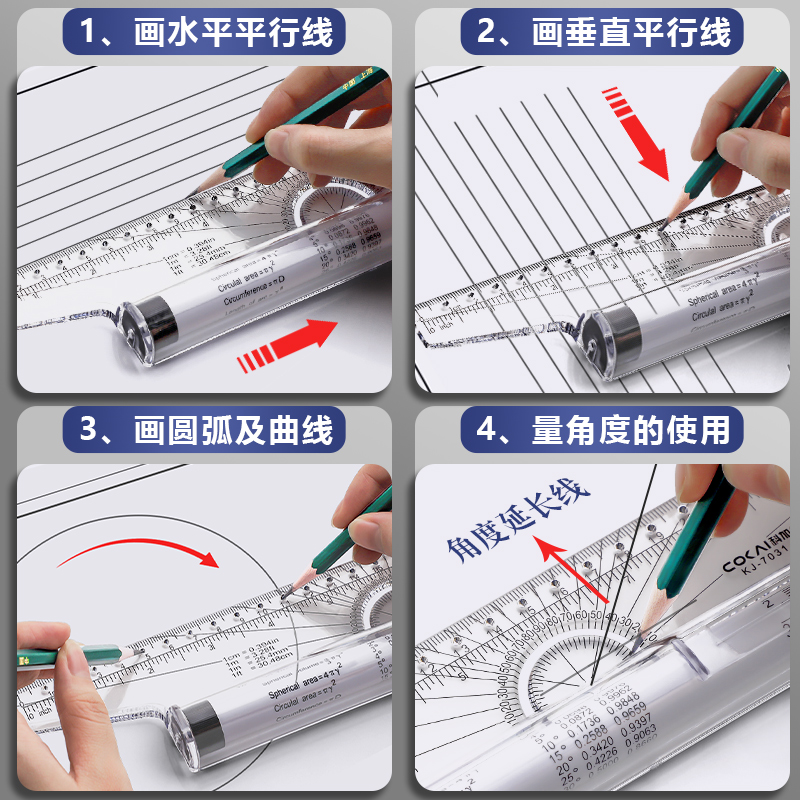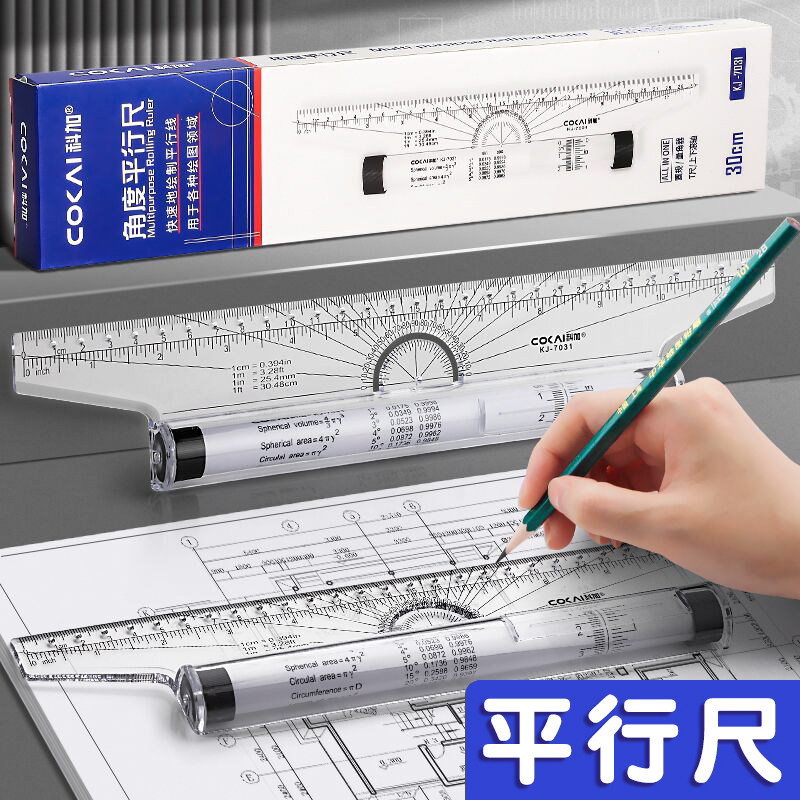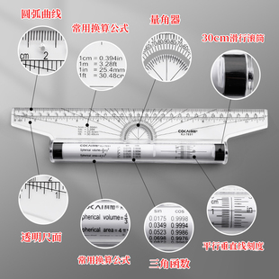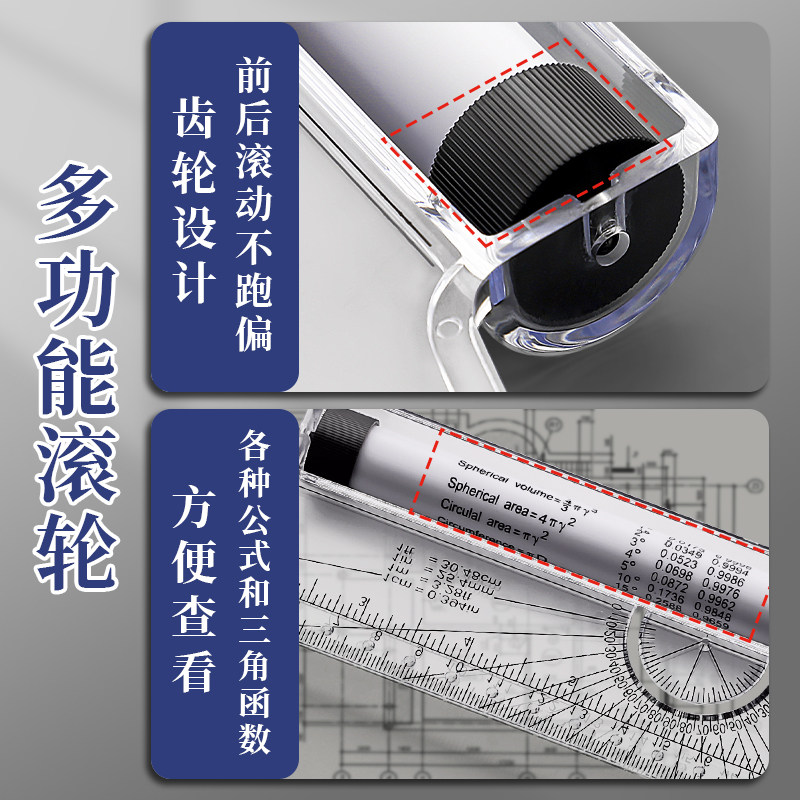 平行尺子多功能绘图尺专业设计30cm滚轮平移尺角度画图比例尺手绘工具美术绘画滚动平衡尺量角器工程制图建筑