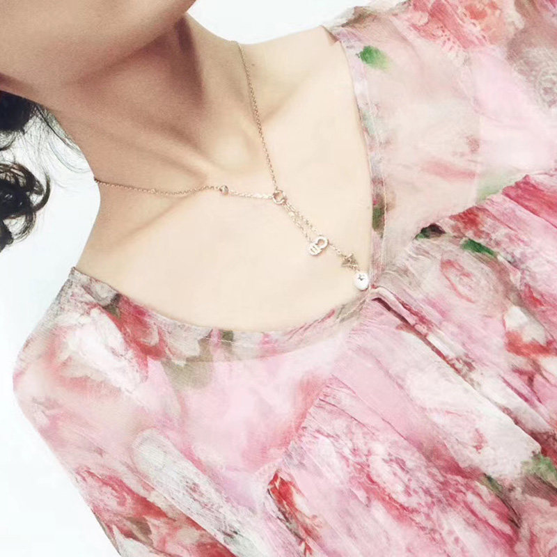 铜镀银项链配饰女款 粉色月光石吊坠项链高级感轻奢小众锁骨链饰品